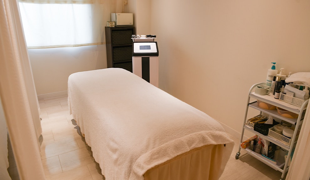 当サロン「半個室」の空間は、プライバシーを重視しながらリラックスできる環境を提供しています。お客様が心地よくトリートメントを受けられるよう、隣の施術との仕切りがありながらも、開放感があります。ゆったりとした時間を過ごしながら、美容とリラックスを同時に実現できます。